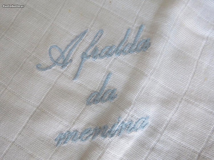 Fralda para menina, debruada em tecido aos corações e bordado a azul