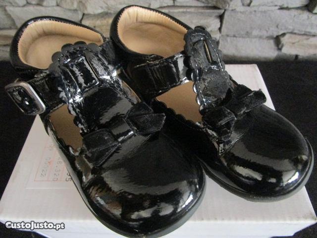 Vendo sapatos de verniz no exterior e em pele no interior, cor preta, sola em borracha, como novos e na caixa original.