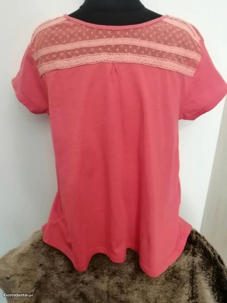 T-shirt com renda em salmão e coral, para menina Tam.14, da Brotes, como nova, por 10 EUR + portes de envio ou passando a levantar em Rio Tinto junto à igreja matriz.