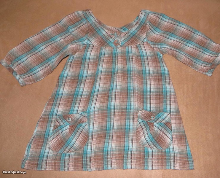 Vestido Algodão, manga comprida 1 - 2 anos - Composição: 100% Algodão Estado impecável