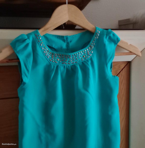 Vestido verde 4/5 anos , aplicações decote, solto e pála no ombro