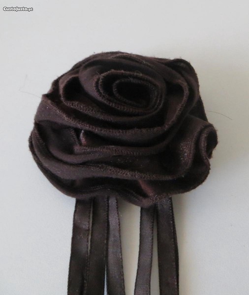 Alfinete com roseta e fitas, castanho