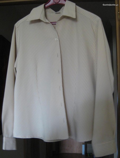 Preço: 1 €Blusa Beije com Risca Preta Manga Comprida Grande