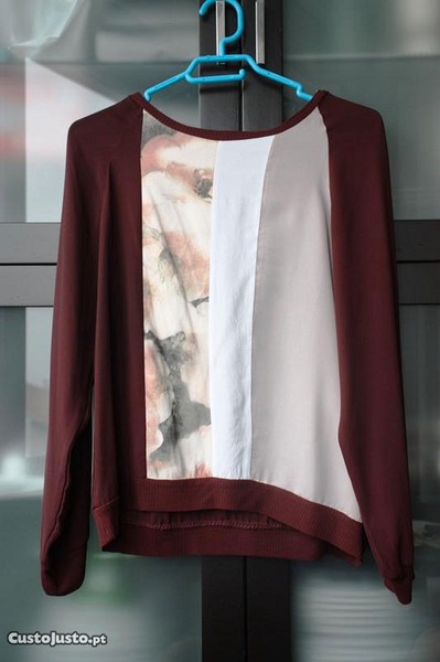 Preço: 11 €Blusa bordeaux da ZARA com dois tecidos Tamanho M