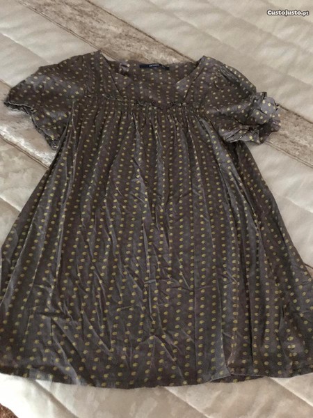 Blusa nova, mas sem etiqueta tamanho M castanha com bolinhas amarelo. So 5 euros p desocupar