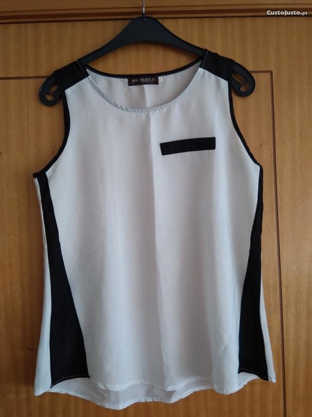 Vendo blusa caveada na cor branca e preta com bolso de feitio.