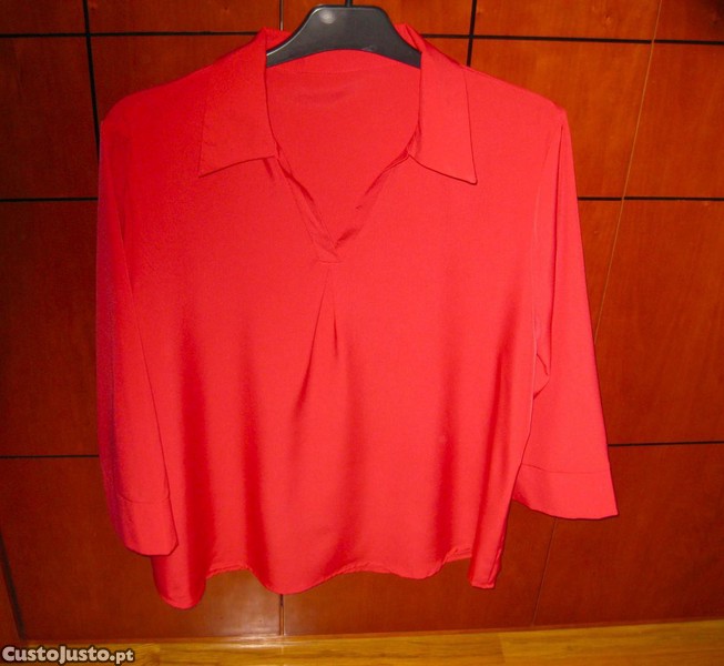 Blusa vermelha com colarinho e mangas 3/4, tamanho XXL.