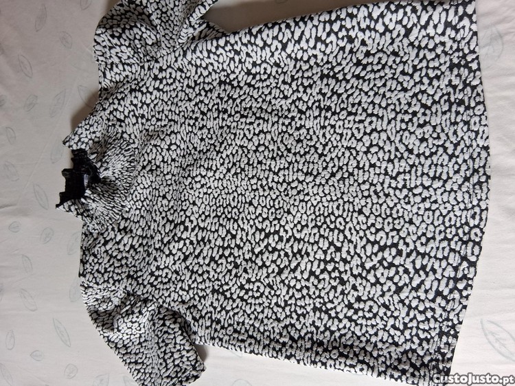Blusa Zara, preta/branca, Tam S (Portes incluídos)