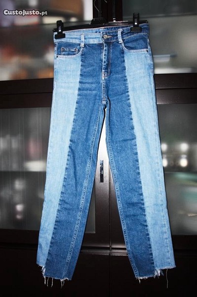 Calças de ganga com dois tipos de ganga da marca Pull&Bear. O tamanho é o 34.