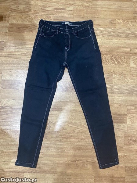Calças de Ganga Pretas Pull&Bear tamanho 38. Eram de ganga clara mas foram tingidas de preto numa lavandaria.