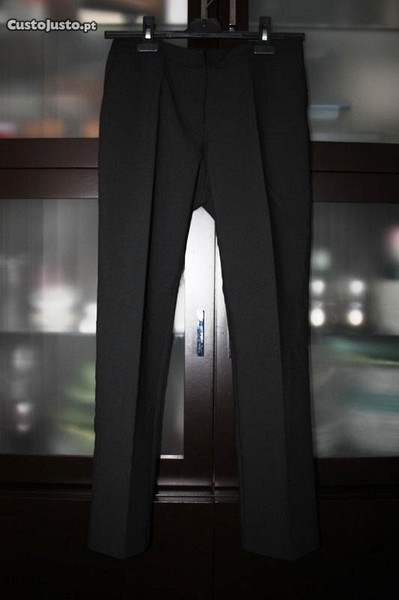 Calças pretas com galão preto nos bolsos da marca MANGO. O tamanho é o 34.