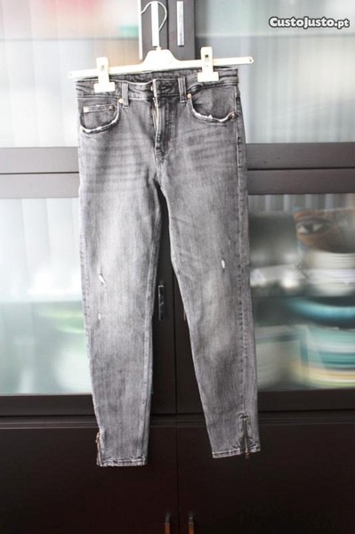 Calças pretas elásticas com fecha nas pernas da marca ZARA. O tamanho é o 34.