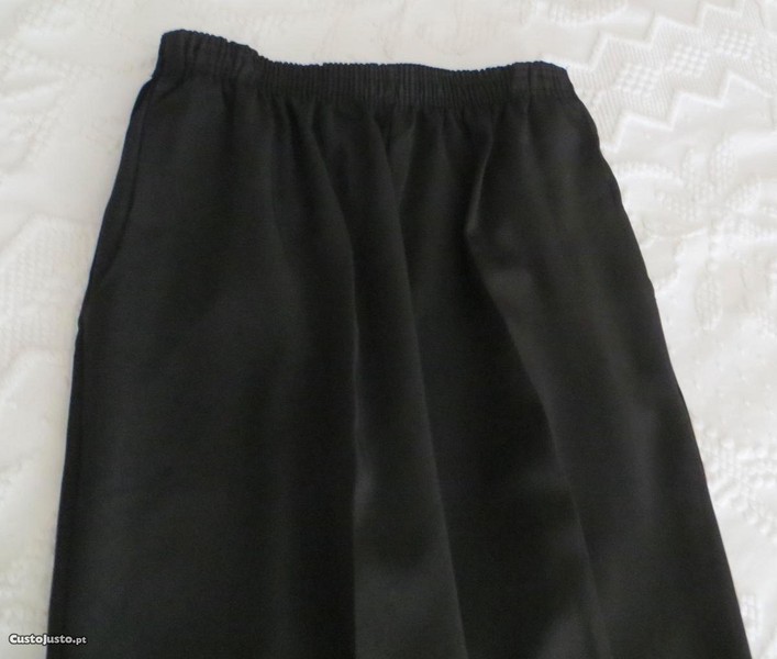 Calças pretas XXL - 44, cinta c/ elástico e bolsos - Feito à mão