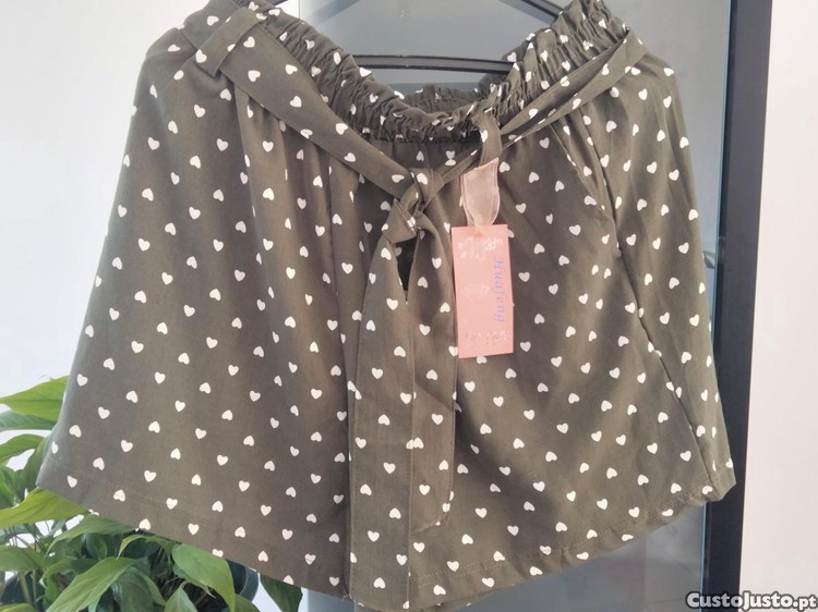 Calções com corações. Perfeitos para um look descontraído e divertido. Ideais para os dias de verão e para se destacar com estilo.