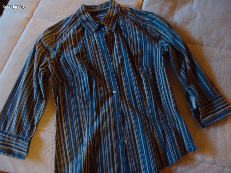 Camisa as riscas em tons azuis, manga 3/4, tamanho M, Zara Basic, em ótimo estado, em algodão. Portes à cargo do comprador.