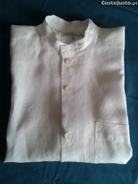 CAMISA de linho p.homem, m.manga,branca, tam.M +Oferta dvd