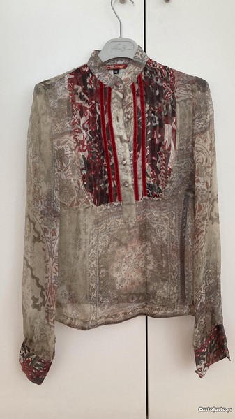 Elegante camisa marca Caramelo, senhora, tamanho XS. Com botões frontais e fecho lateral. Punho com 3 botões. Em excelente estado.