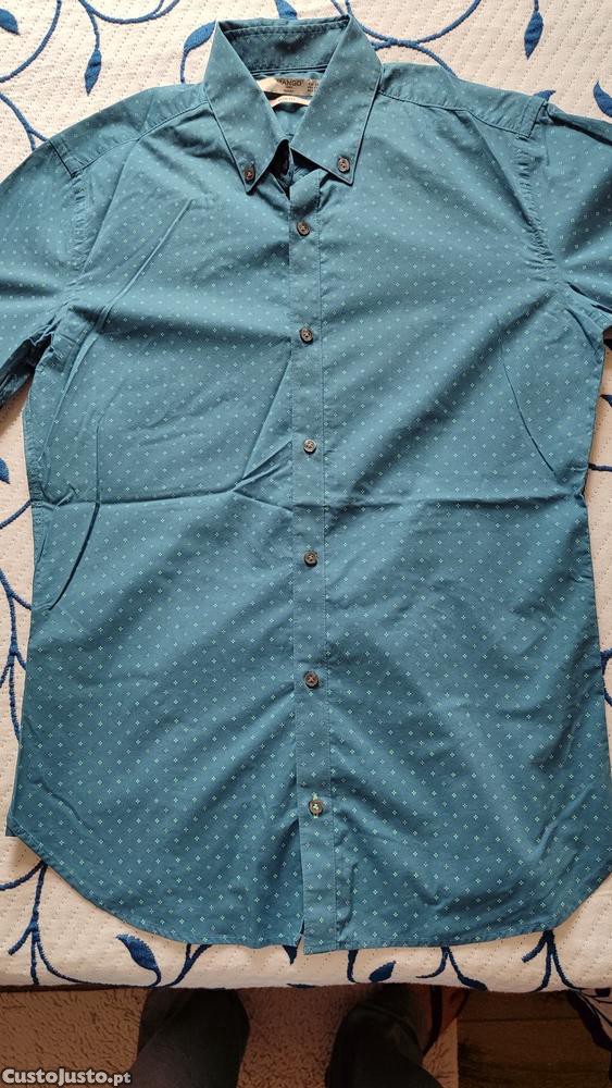 Camisa Verde Homem Mango Tamanho XS Slim Fit