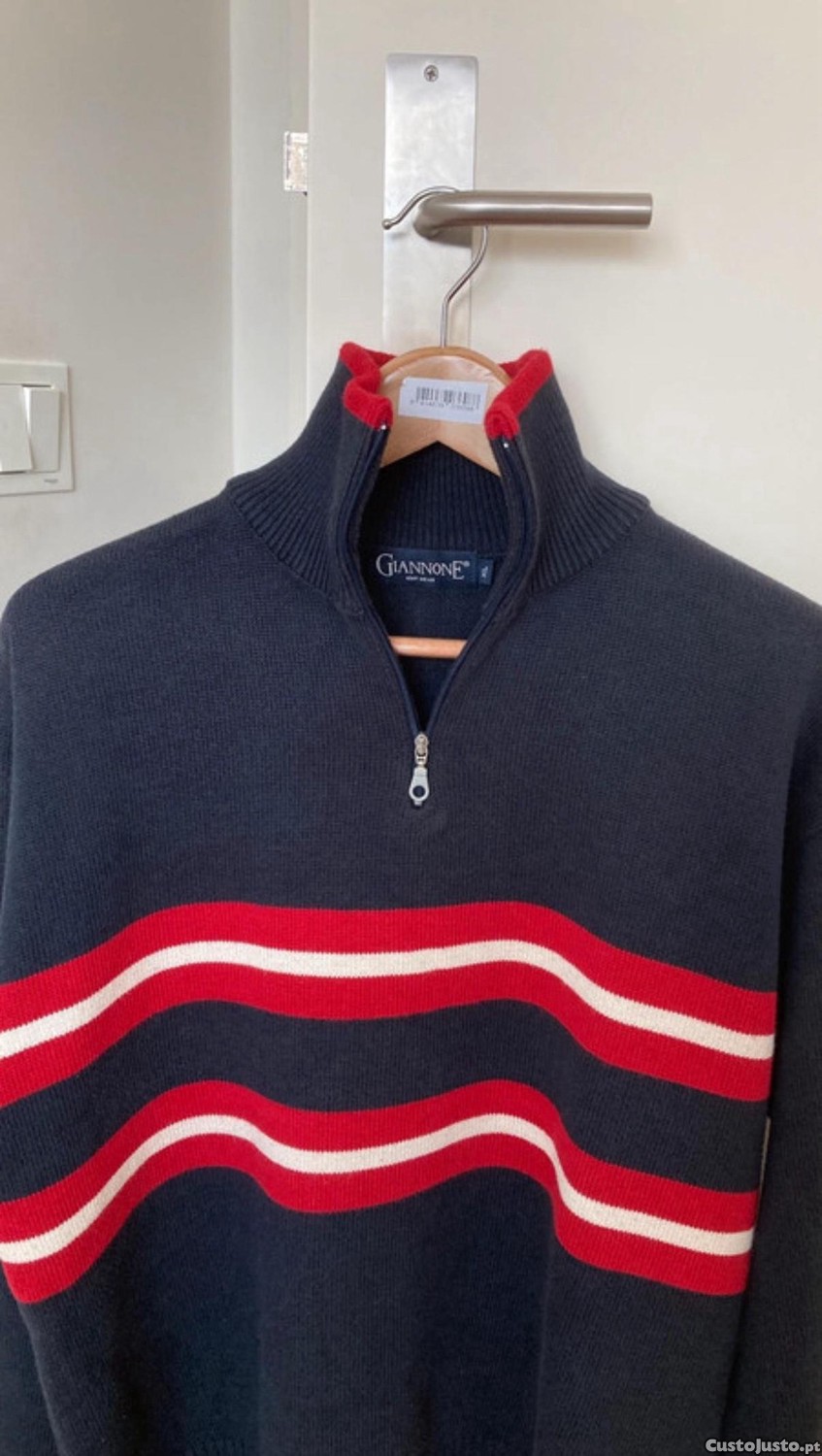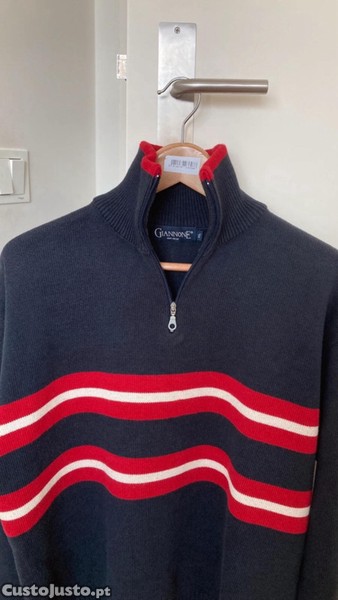Camisola de malha com gola Giannone - azul. Tamanho XL. Composição: 50% acrílico e 50% algodão.