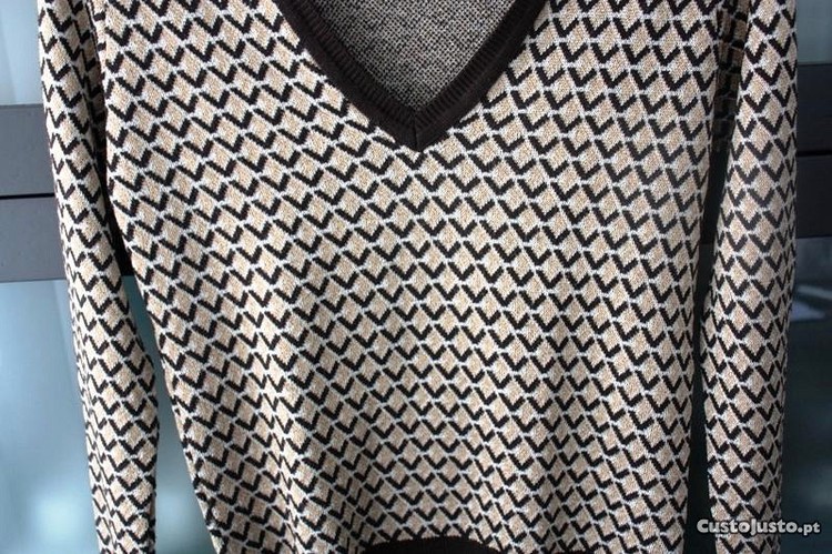 Camisola em castanho com amarelo torrado da marca ZARA. O tamanho é o S.