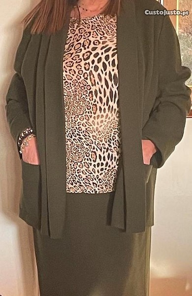 Conjunto de casaco e saia em malha