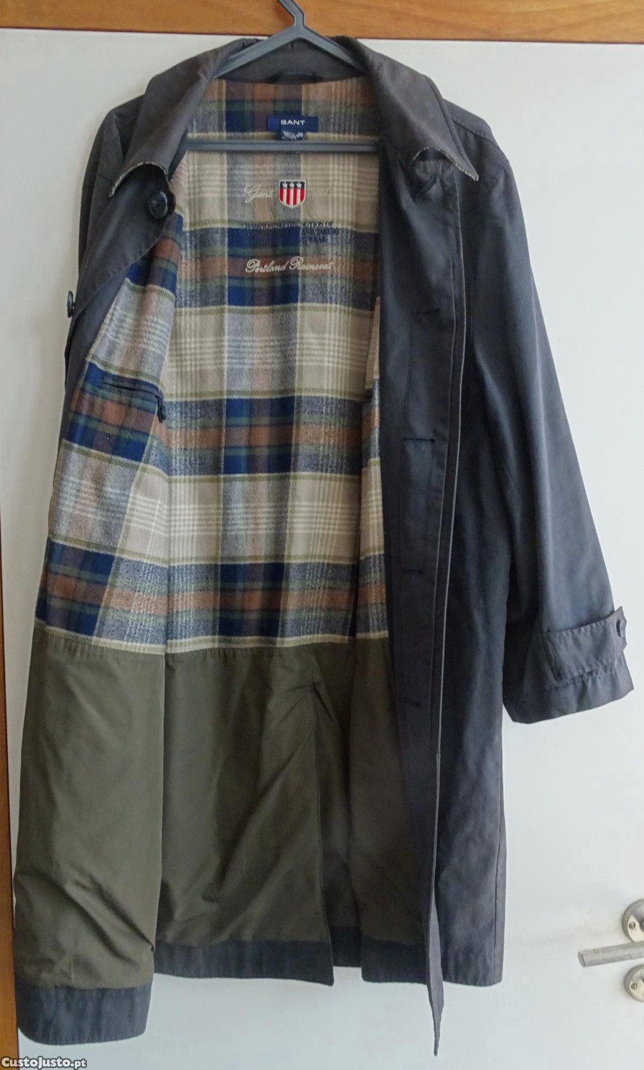 Gabardine / Sobretudo cinzento escuro da marca Gant (Portland Raincoat) tamanho L. Cardado no Interior. Um verdadeiro must-have para os dias chuvosos e de frio. Modelo Portland Raincoat perfeito para qualquer ocasião.