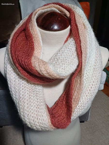 Gola branca, beje e tijolo composta por 3 tiras, uma de cada cor