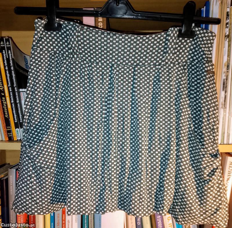 Marca Red Oak. Muito bom estado. Tamanho L (largura da cinta 42cm). Largura - região da bainha - 74cm. Comprimento 38, 50 cm. 2 bolsos. Tecido leve e suave. Com forro castanho. Se quiser posso entregar em mãos na Foz, Porto. Também envio pelos ctt apos transferência. Portes a cargo das cliente. Não me responsabilizo por extravios.