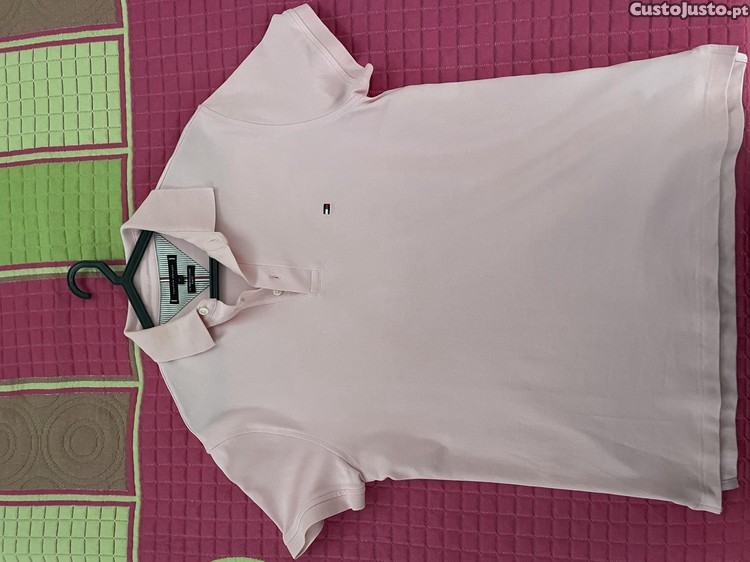 Polo de manga curta em cor-de-rosa da marca Tommy Hilfiger, tamanho M, slim-fit.