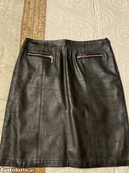 Saia em Napa matizada (não lisa) preta, da Mo, tamanho 36, forrada.