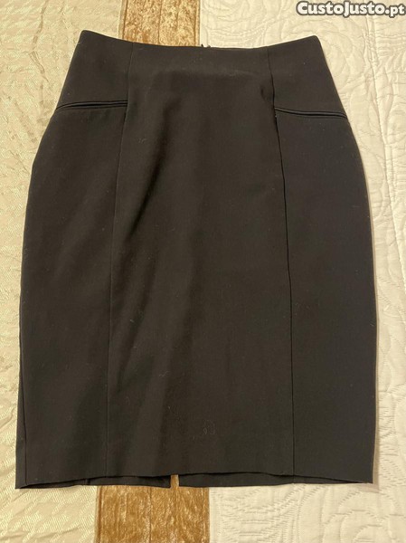 Saia travada com pequena racha atrás, preta, tamanho 36 da Mango. Sem elasticidade. Com forro.