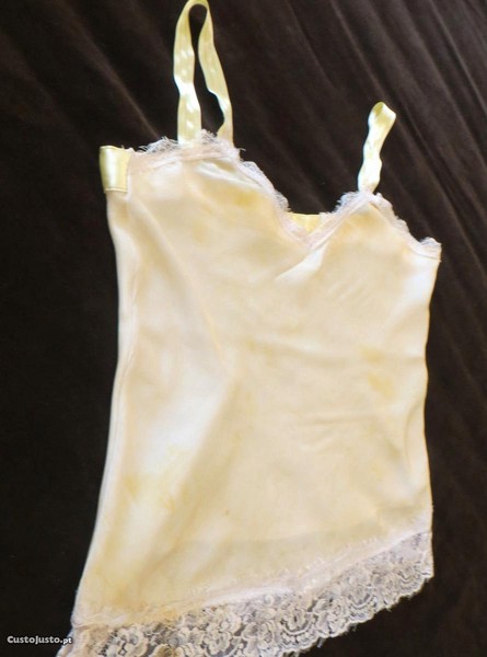 Preço: 6 €Top amarelo, tresmalhado e amarelo liso, alças largas e renda - Tamanho L / XL