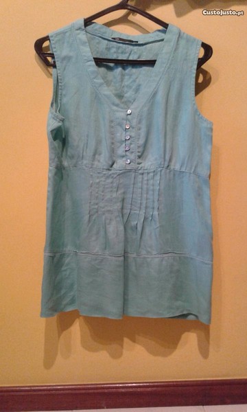 Túnica em linho tamanho M de cor azul turquesa