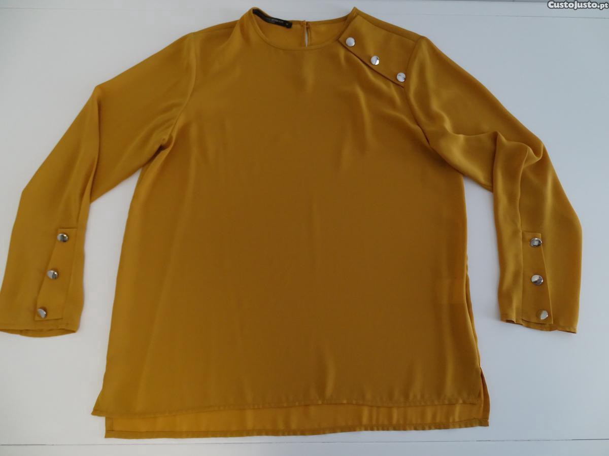 Vendo túnica da CARBONNO WOMAN (original), em tecido macio tipo seda amarelo torrado (caramelo). Tamanho M (38). Manga comprida com botões e decote redondo. NOVA (POR ESTREAR).