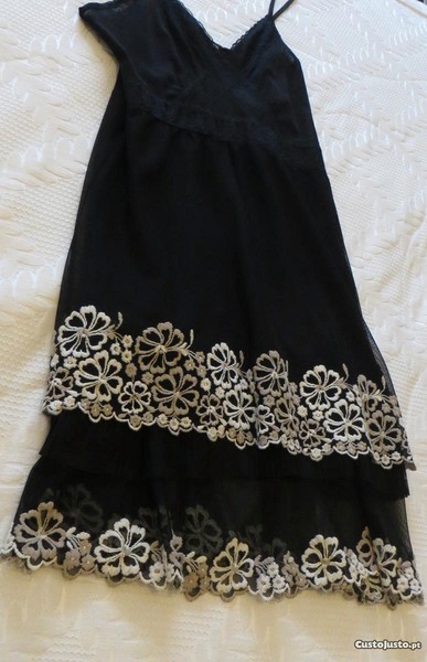 Preço: 14 €Vestido Eventing Collection - Cor: Preto bordado a bege e pérola Alças ajustáveis - Tam. M