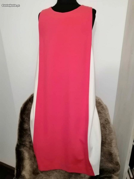 Vestido vermelho e creme, de alças largas,da Mango Suit, tamanho M, tamanho pelo joelho, em tecido grosso de viscose e poliamida, como novo, por 15EUR+ portes de envio ou passando a levantar em Rio Tinto junto à igreja matriz.