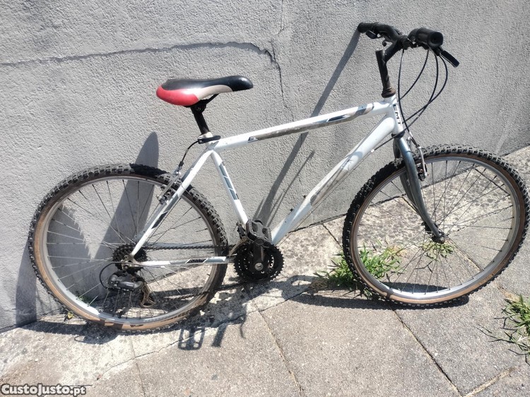 Bicicleta roda 26", com sistema de mudanças Shimano Tourney, que funcionam muito bem. A pintura tem mau aspeto devido à retirada dos antigos autocolantes.