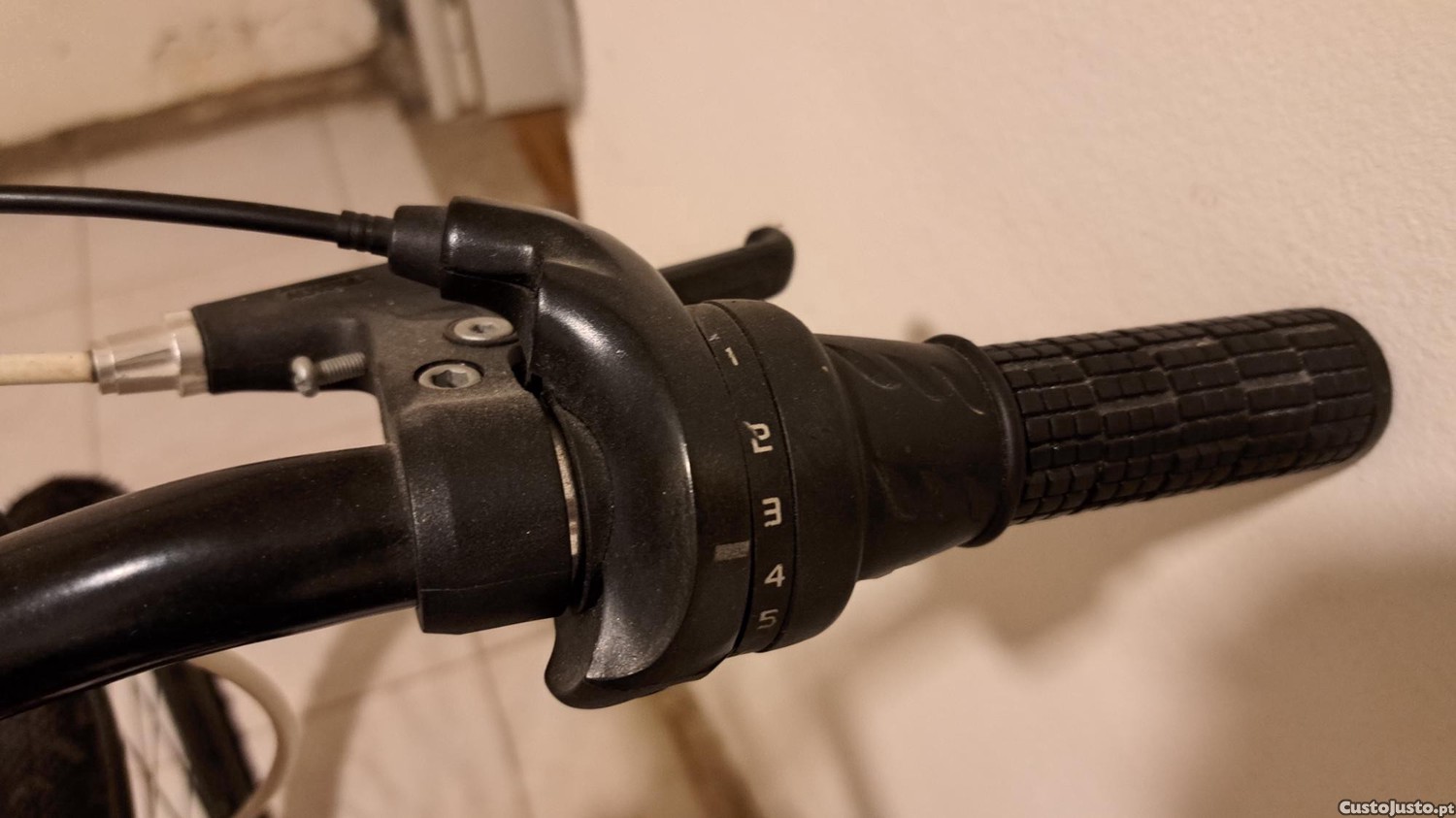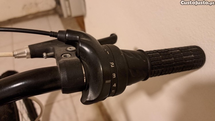 Mudanças de punho rotativo shimano, suspensão na roda da frente.