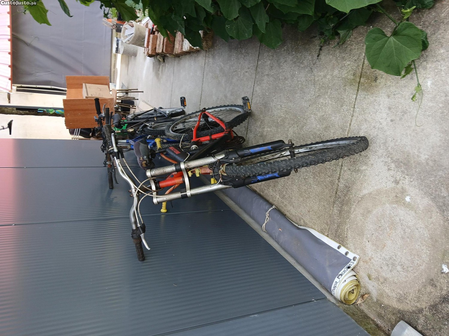 Bicicletas uma de criança 3 4 anos por 5 eur, uma azul de adulto por 10 eur, outra roda 26 por 20 eur preta, uma vermelha suspensao total 60 eur, bic de alumínio marca Berg por 100eur. Lote 160 euros. Todas a precisar de mimos. Possibilidade trocas por rebarbadeira, fogão a gás, televisão, outras maquinas e ferramentas. Ver em Gaia perto continente, conforama