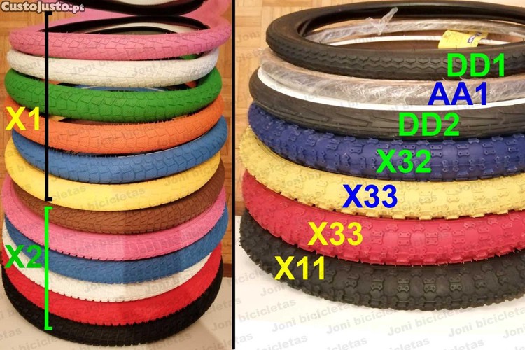 Preço: 9 €Pneus coloridos, câmaras de ar e tampas coloridas de válvula
