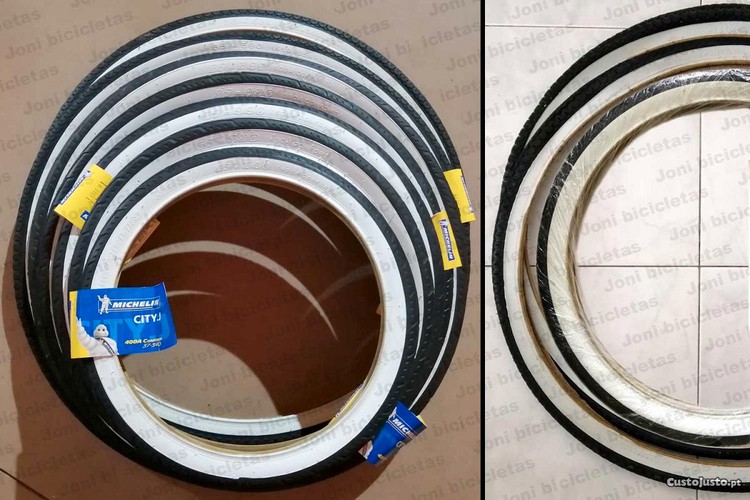 Preço: 15 €Pneus de bicicleta pretos com faixas brancas