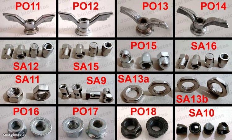 * Rosca 3/8 (eixos traseiros sem mudanças e alguns dianteiros):