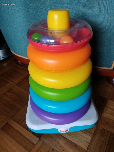 Brinquedo FisherPrise de argolas de construção de torre ótimo para a destreza da criança bebê e dos primeiros passos está como novo