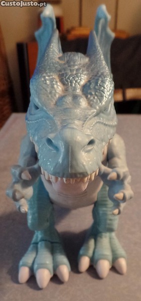 Vendo dragão de brincar em tons de azul, com design realista e cheio de pormenores. O brinquedo possui sistema interativo (funciona a pilhas), com som e movimento, ideal para estimular a imaginação das crianças em aventuras cheias de fantasia.