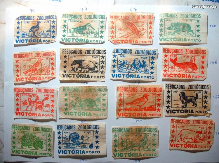 16 cromos de Rebuçados Vitória Zoológicos- Porto