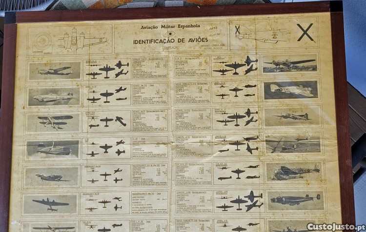 2 Painéis de Identificação de Aviões 2 Guerra Mundial FAP. 1940 Força Aérea Portuguesa e Força Aérea Espanhola. Com molduras em madeira. 63 X 70cm cada
