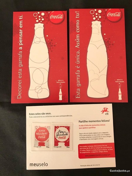 2 Postais e 2 selos da Coca Cola Os 2 postais e os 2 selos são diferentes São de 2013