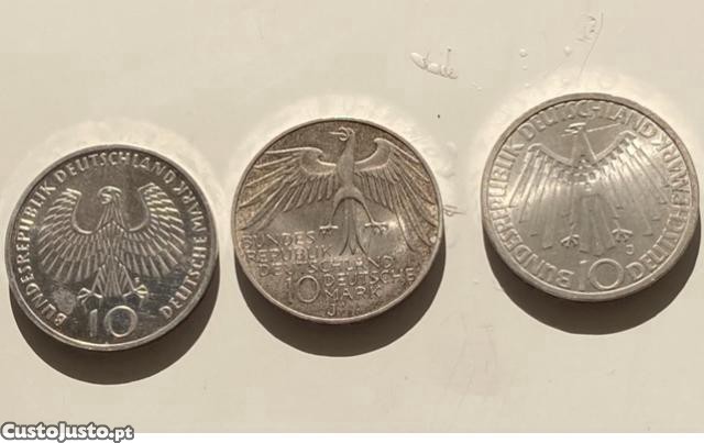 3 moedas de 10 Marcos 1972 alusivas aos jogos olímpicos munich