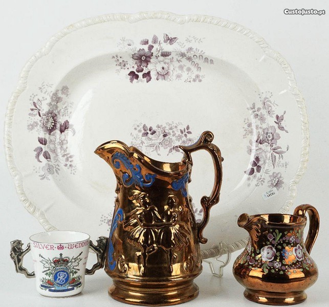 2 Jarros de Lustrina, grande travessa em faiança marcada Opaque China e