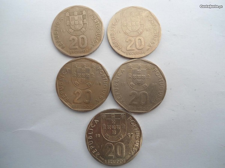 5 moedas de 20 escudos 1986 , 1987, 1988 , 1989 e 1999
